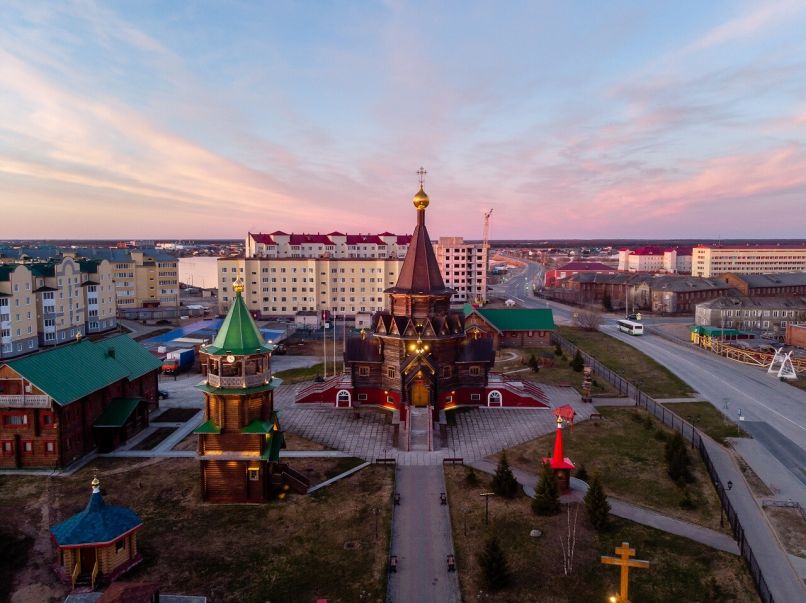 Неподалеку от почты расположен кафедральный собор. Он сложен из кедровых бревен в традициях северного зодчества и кажется ровесником древних церквей со знаменитого на весь мир острова Кижи. Однако на самом деле храму нет и 20 лет.