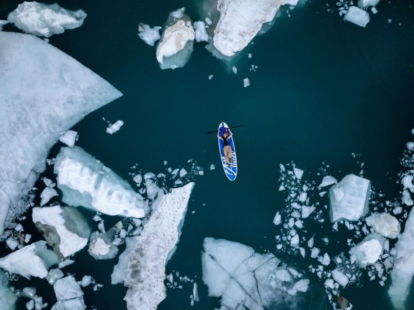 Энтузиасты организовали арктический сапбординг у подножия Ледника Романтиков. Теперь любой желающий может встать на доску, взять длинное весло в руки и отправиться в водное путешествие по лазурной глади холодного озера. Главное – теплее одеться. Основное препятствие на пути – льдины, размер которых может быть огромным. Получаются великолепные и необычные фотографии, за которыми многие уже специально едут на Ледник.