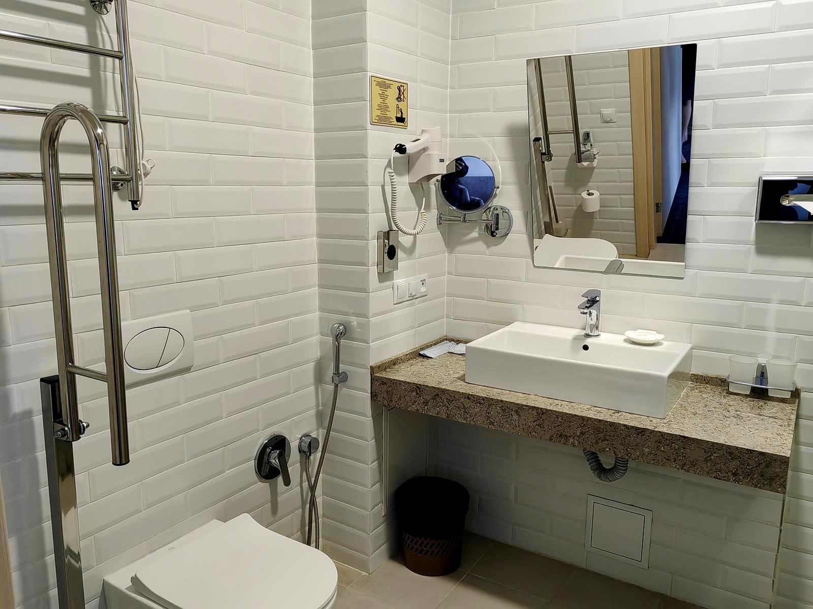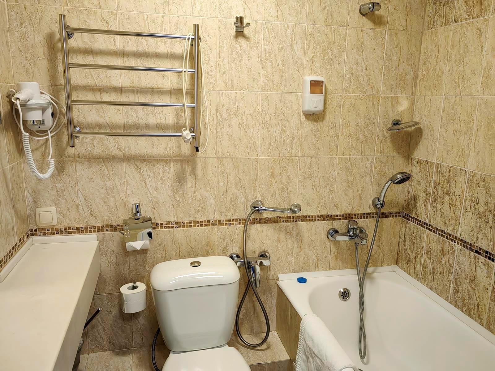 - стандарт (1-местный). Площадь 18 м2. В номере: односпальная кровать, шкаф, письменный стол, холодильник, ЖК-телевизор, чайная станция. На всей территории отеля действует бесплатный Wi-Fi. Для Вашего комфорта бесплатно предоставляются тапочки, мыло, гель для душа, шампунь, шапочка для душа, зубной и швейный набор.