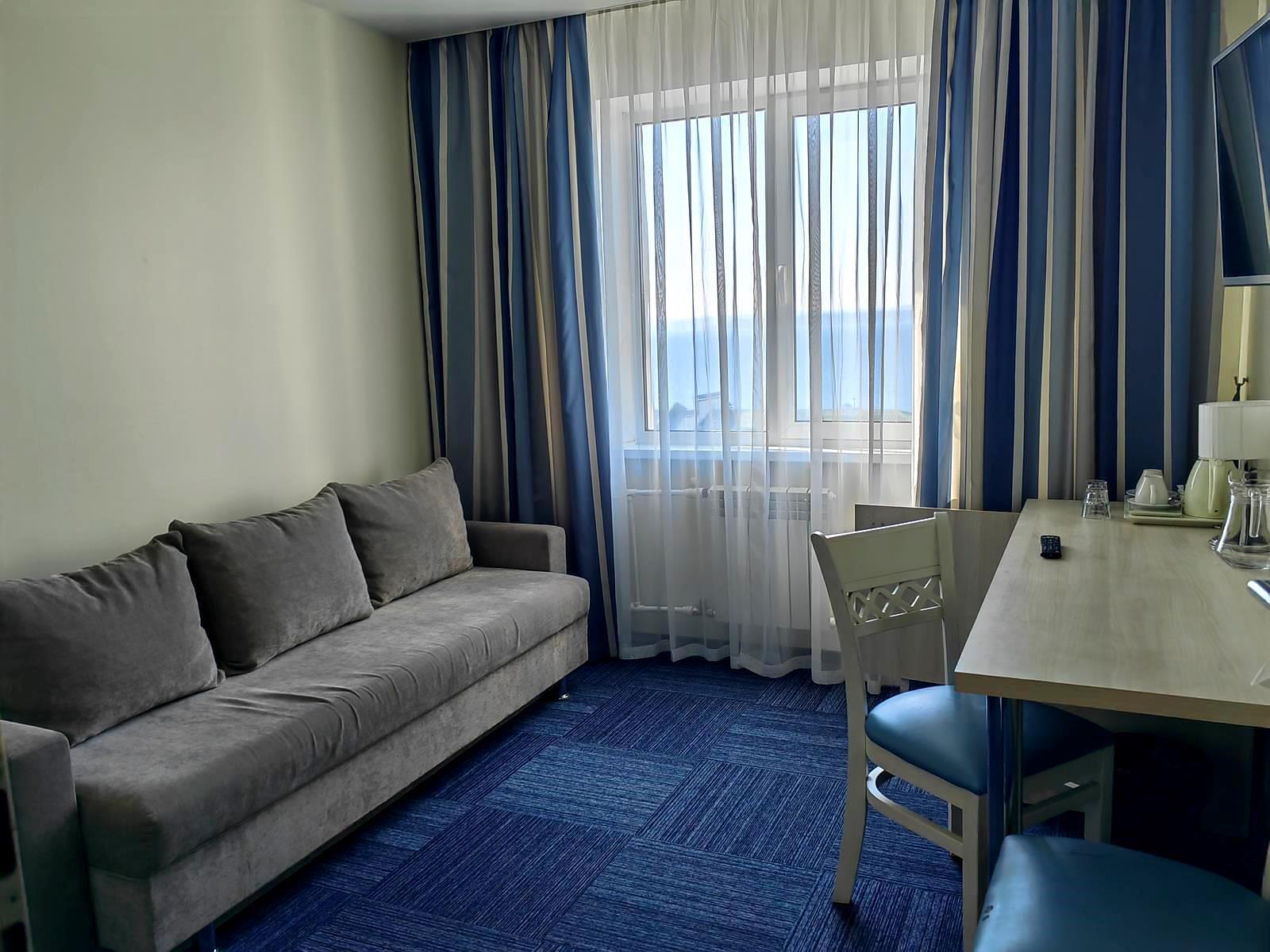 - SMART Люкс. Просторные двухкомнатные номера 36 кв.м. c видом на море, с уютной гостиной. В номере оборудованное рабочее место, Wi-Fi, телевизор, кондиционер, сейф, чайная станция, фен, телефон, тропический душ, холодильник.