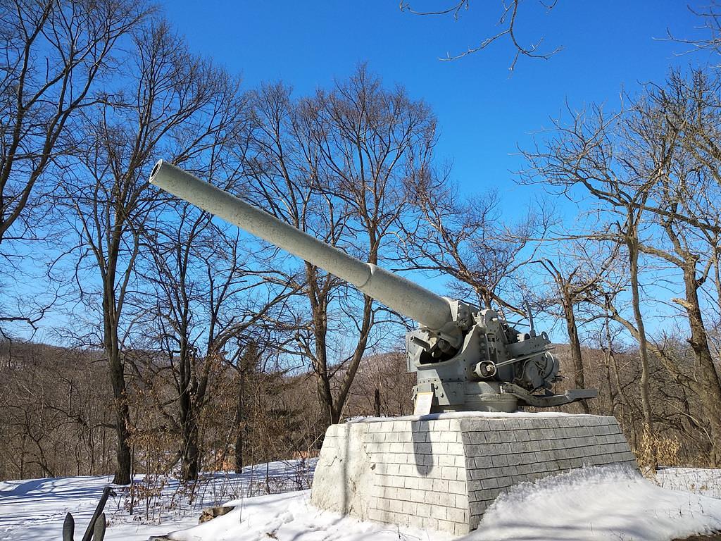 - Артиллерийская батарея №982 береговой обороны. Четыре крупнокалиберных орудия, сохранившихся до наших дней. Расположены у перешейка на остров Шкота, на высоте около 130 м над уровнем моря. И как вы понимаете рассказы о крепости и острове будут продолжатся:)