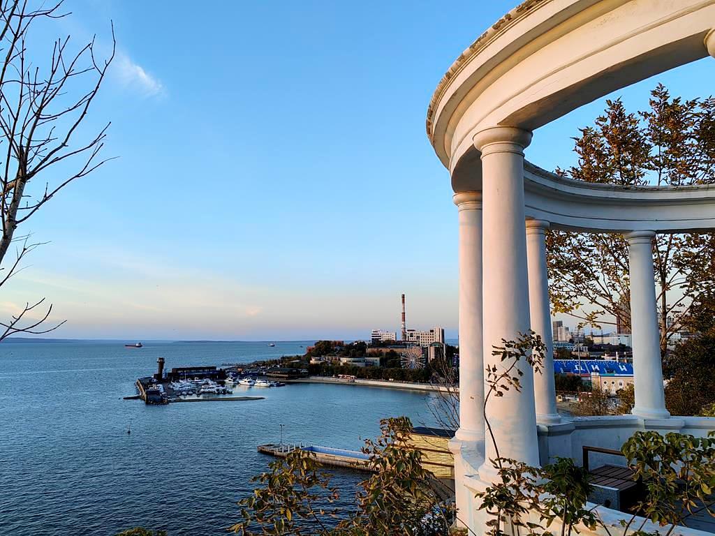 - Вдоль бухты Новик, мимо мужского монастыря. Вдоль бухт Рында и Воевода, к форту №9, 166 м над уровнем моря, полуостров Кондратенко. Очень впечатляющая видовая площадка с открывающимся видом на острова архипелага императрицы Евгении. Рассказ об акватории и островах.