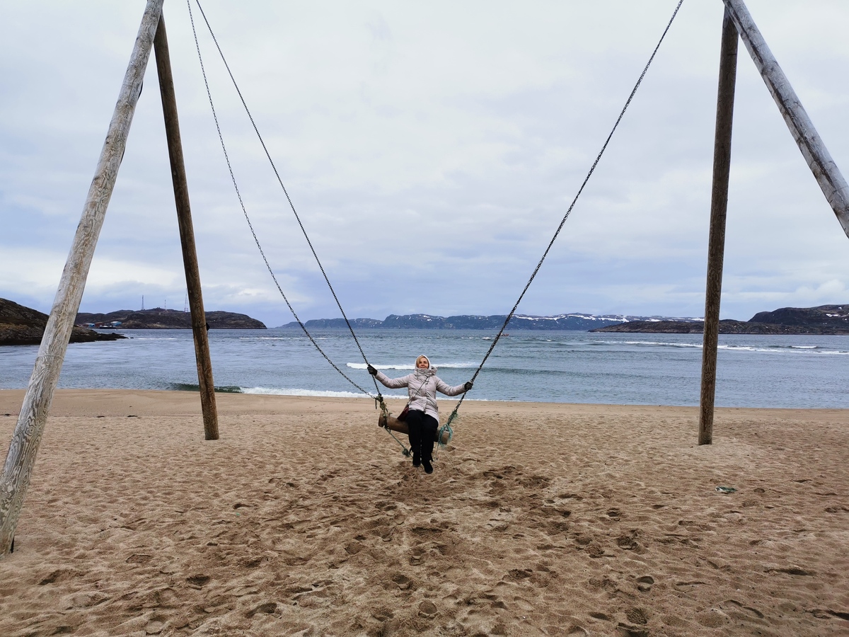 Мы сделаем остановку на песчаном пляже у ресторанов Териберки, где можно покачаться на огромных качелях прямо у моря. Здесь же можно увидеть выброшенный на песок старый рыболовецкий корабль и посмотреть скелет кита, который использовали в съемках фильма «Левиафан».