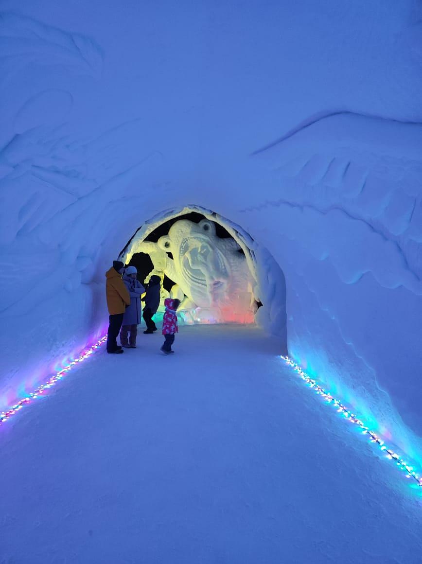 В конце декабря, одно из самых популярных мест в этом районе "Снежная деревня" открывает свои двери для гостей. И конечно, мы не оставим ее без внимания. Площадь «Снежной деревни» — более 2000 кв. м. Под ее белоснежными сводами располагаются 20 просторных залов, украшенных ледяными скульптурами, снежными барельефами и причудливыми инсталляциями. Экспозиция каждый год новая и никогда не повторяется.