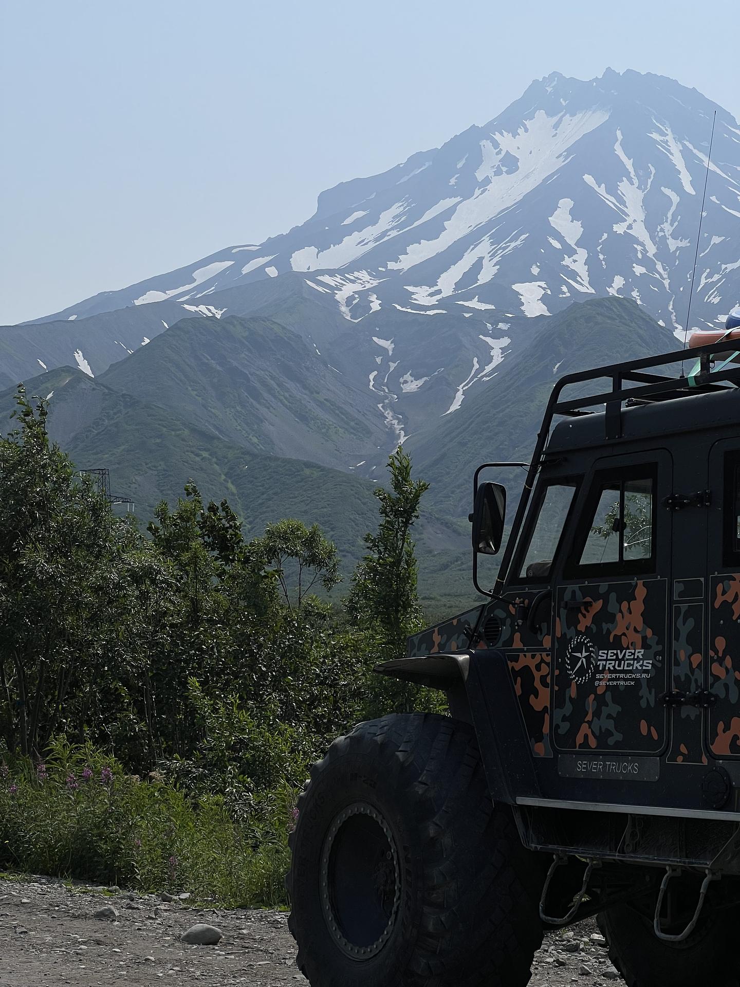 Нас ждёт одна из визитных карточек Камчатки – вулкан Вилючинский. К нему мы отправимся на легендарном вездеходе Sever Truck и будем любоваться горным гигантом, который возвышается над окрестностями на 2173 м.