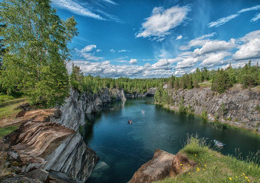 Джип тур с посещением жемчужины Карелии - Горного парка Рускеала. На маршруте Вы увидите большой мраморный карьер, заполненный прозрачными грунтовыми водами, пообедаете рядом с живописными водопадами на реке Тохмайоки, доберетесь на внедорожниках до труднодоступного каньонного водопада белые мосты.