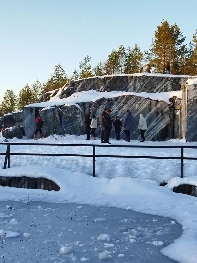 По прибытию в горный парк Рускеала - наземная экскурсия "Мраморный каньон". Старый и заброшенный карьер добычи камня, разрабатывавшийся почти три столетия, сегодня обустроен для посещения туристов. Вы увидите уникальное творение - огромную чашу, вырубленную руками человека в массиве мраморного пласта, которая простирается с севера на юг на 456 м, а ее ширина - 109 м. Прогуляетесь вдоль необыкновенного озера, которое обрамлено пологими и отвесными скалами из светло-серого мрамора, достигающими высоты 25 м над зеркалом воды.