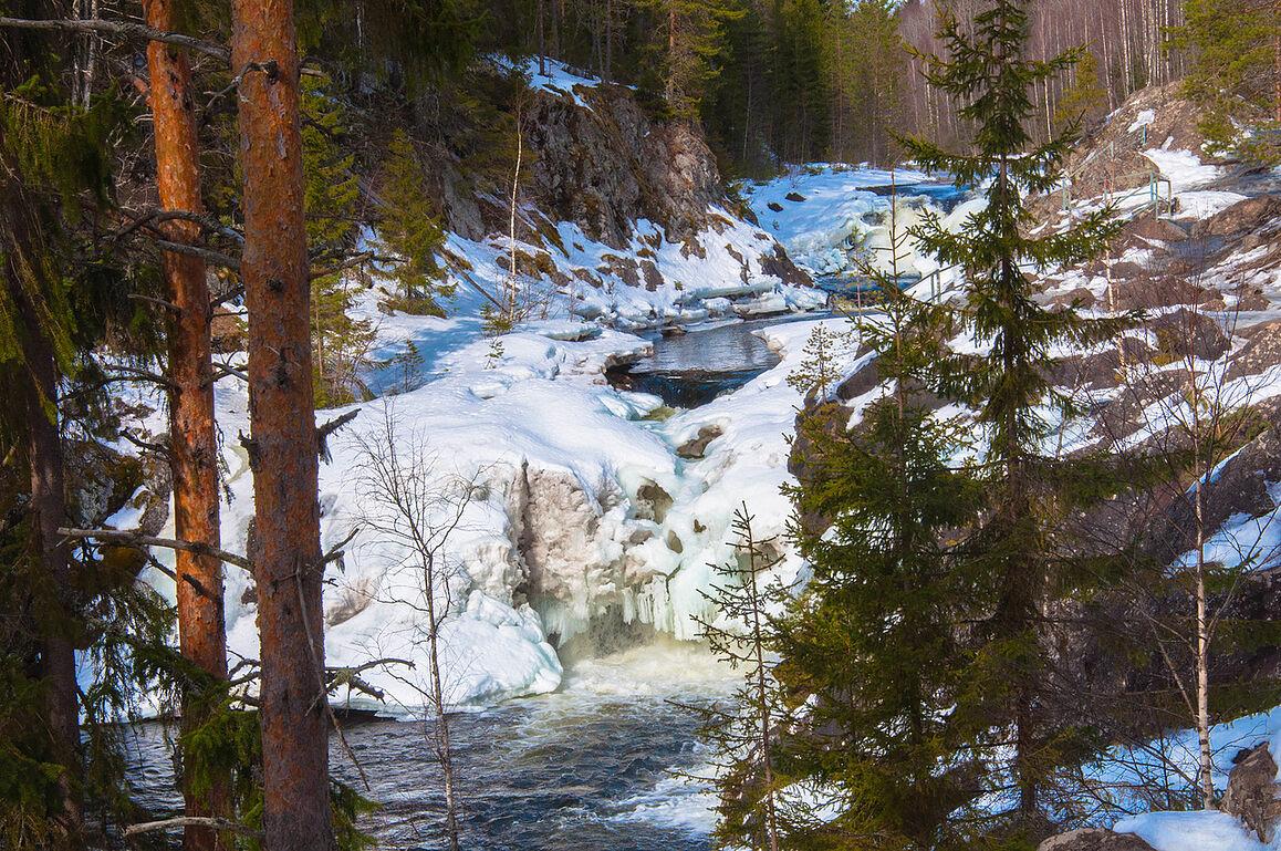 Зимой Карелия превращается в настоящую зимнюю сказку: дремучие леса укрываются снегом, многочисленные озера сковывает льдом, и все вокруг замирает в суровой хрустальной красоте.