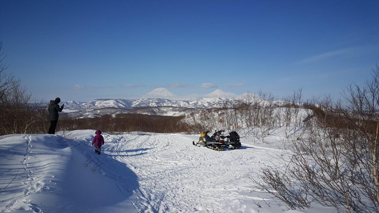 • Заезд на снегоходе на вершину сопки Угловая. Время на фото/видео съемку впечатляющих видов на город и близлежащие вулканы.