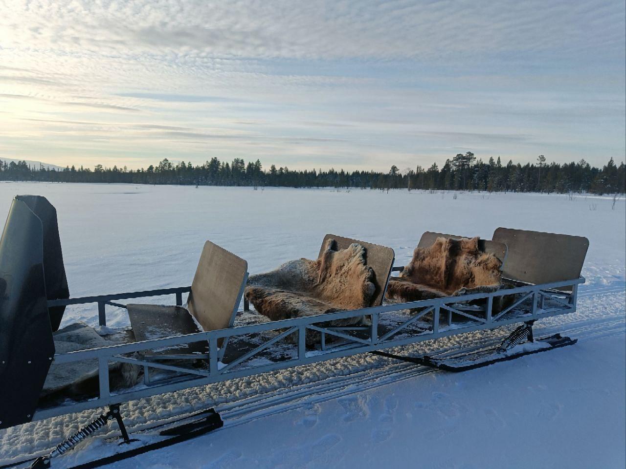 - Поездка в санях за снегоходом в парке Териберка;