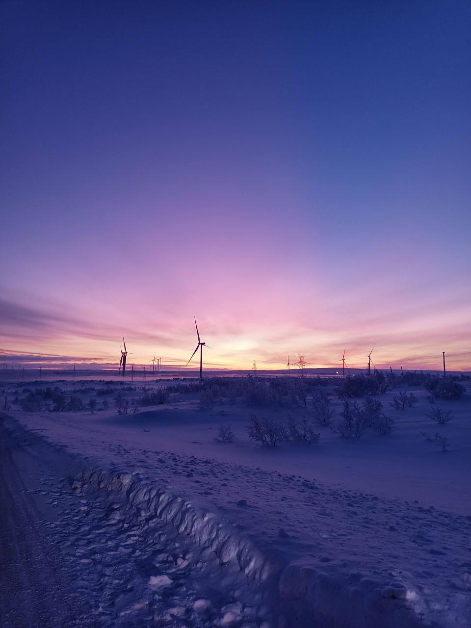 Ранее утро. Мы отправляемся в удивительное путешествие — впереди 120 километров захватывающей дороги к живописному уголку земли. И вот первое чудо — величественный арктический ветропарк раскинется перед нами во всей красе. Могучие ветряные турбины, словно древние стражи, застыли на фоне бескрайней тундры.