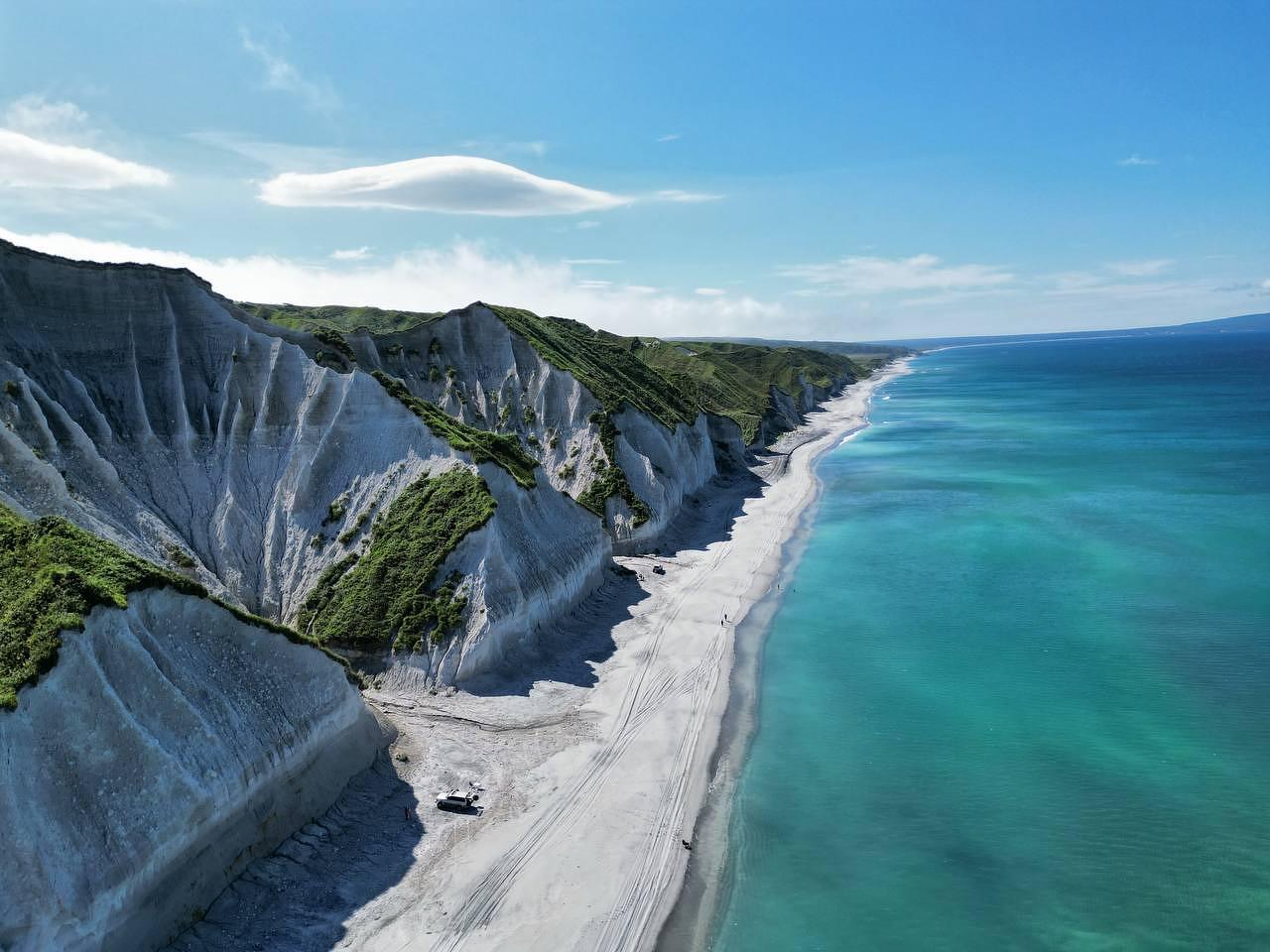 Фантастическое белоснежное побережье поражает своей первозданной красотой. Скалистые берега, напоминающие вырезанные из морской волны монументы, хранят истории тысячелетий. Здесь каждый обрыв, каждая бухта похожа на страницу романа Жюля Верна.