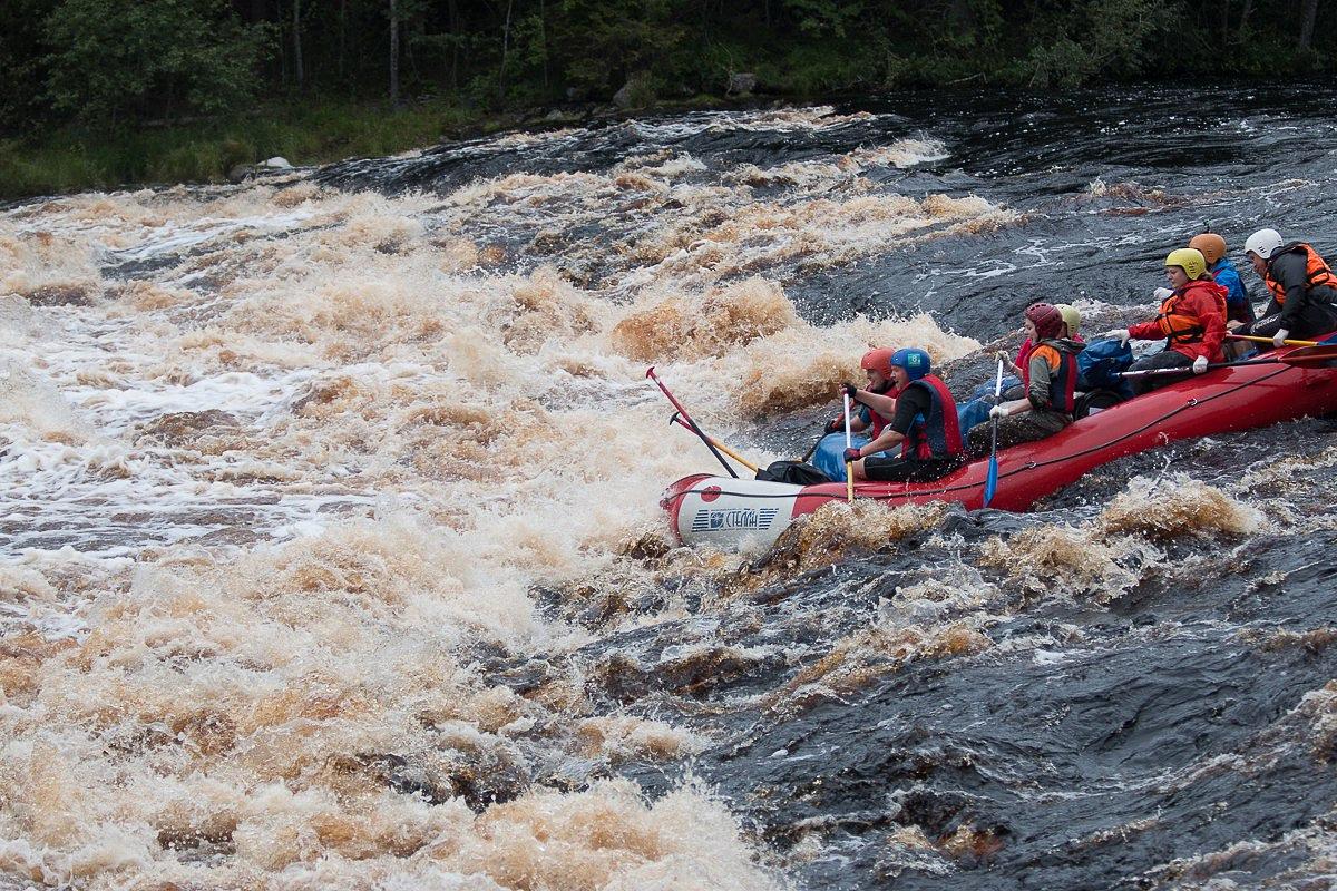 - В случае выпадения из рафта - не паникуйте, не стремитесь ловить вещи, которые были с собой. Развернитесь по направлению течения реки вперед ногами. Инструктор и остальные участники вам помогут.
